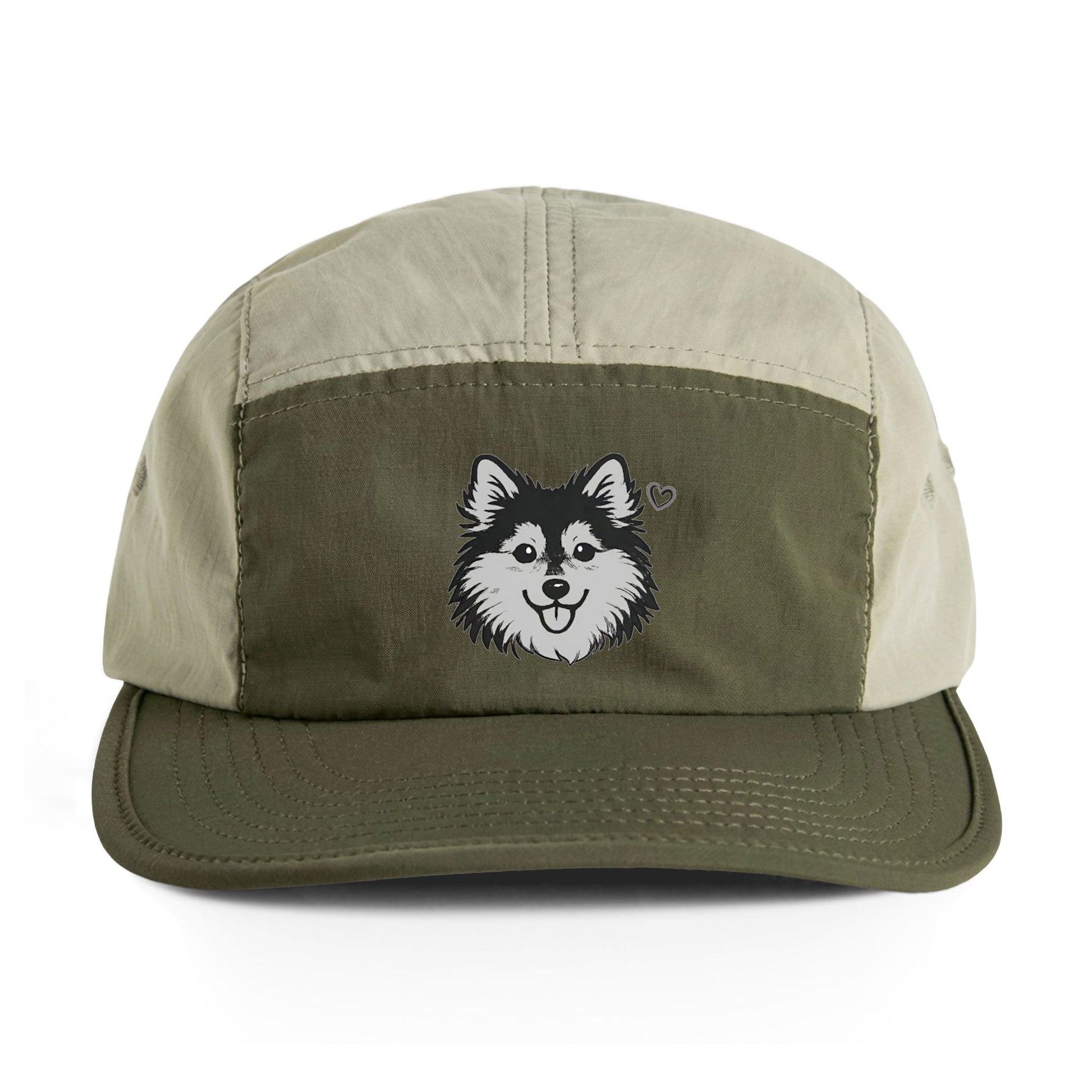 A lightweight two-tone nylon cap that brings playful, outdoorsy energy to everyday wear. The five-panel silhouette sits low and sleek, with contrasting panels that highlight a cheerful husky face and a heart from our Happy Husky Co. Collection on the front. Built from quick-dry, 100% recycled nylon, it’s breathable and ready for damp weather or active days. The adjustable snap closure and elastic straps give a secure fit for adult heads, while the tear-away label keeps the interior clean and comfortable. Subtle, durable stitching and a slim brim keep the look casual and ready for hikes, errands, or slow weekend strolls with your pup.