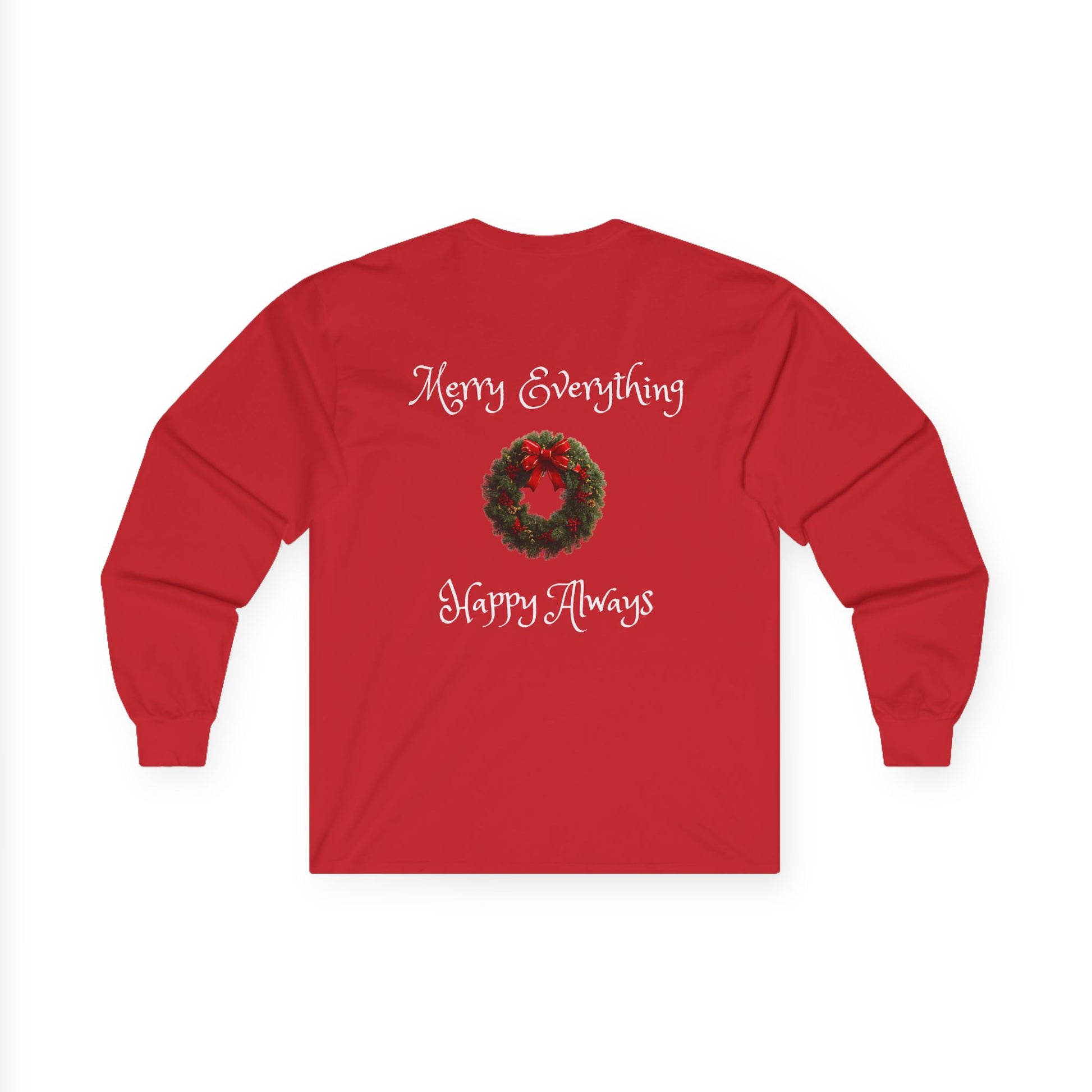 Embrace the festive spirit with this cozy adult unisex long sleeve tee, perfect for the holiday season. Made from environmentally-friendly cotton, this shirt has a wonderfully soft and vintage feel. Its classic fit and ribbed collar ensure both comfort and style, making it a versatile addition to your wardrobe. Great for those who love to celebrate Christmas with a family pajama theme, look for this top in kids sizes as well. It's the perfect companion for the merriest time of the year!