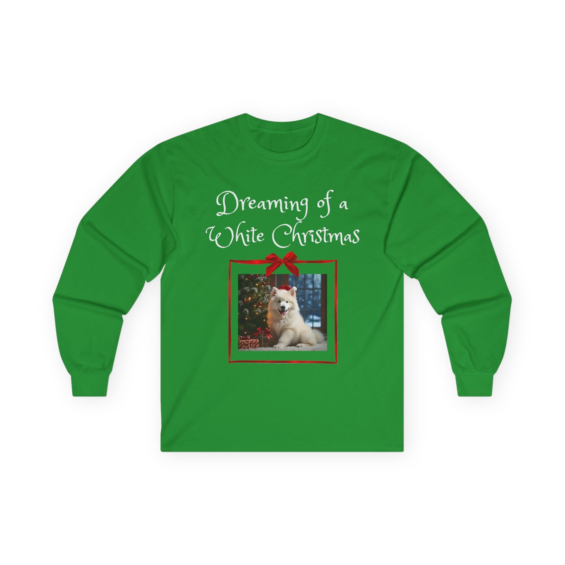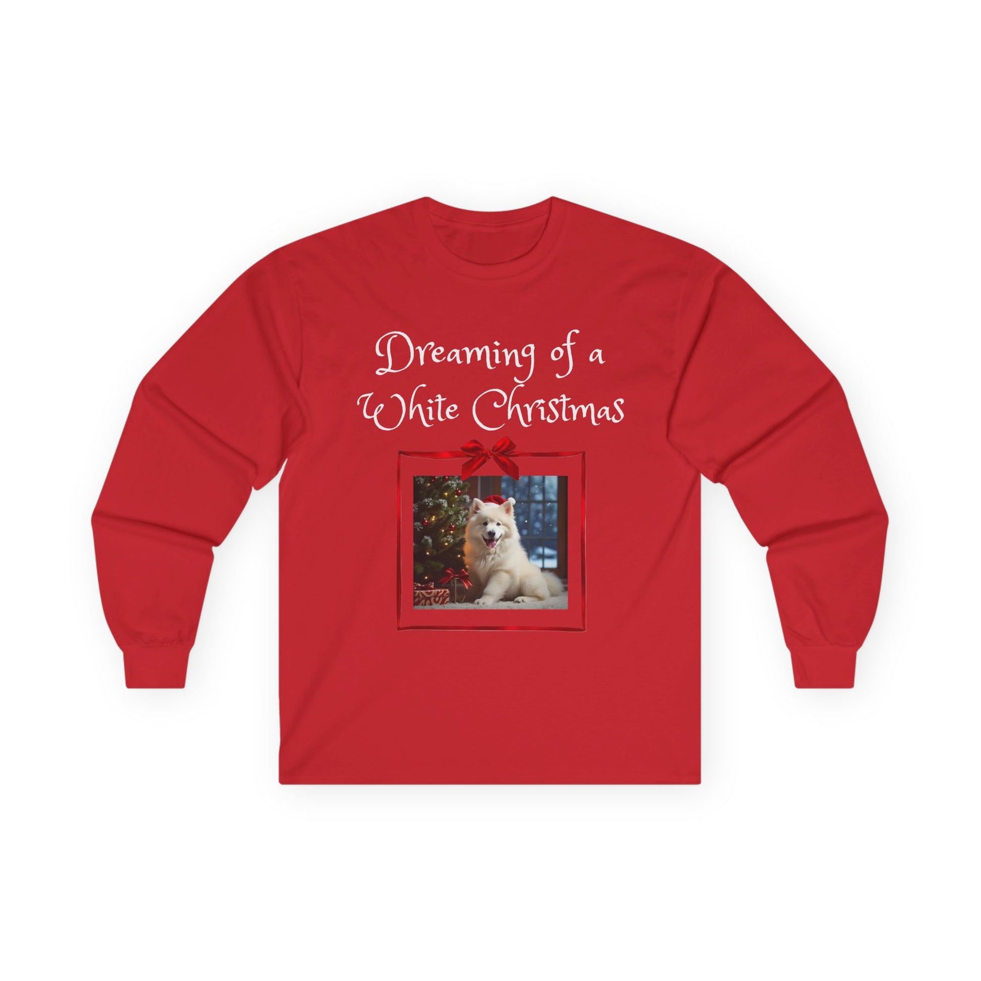 Adult Unisex Christmas Samoyed Dog Theme Long Sleeve Tee - 'Dreaming of a White Christmas' (Additional Colors)