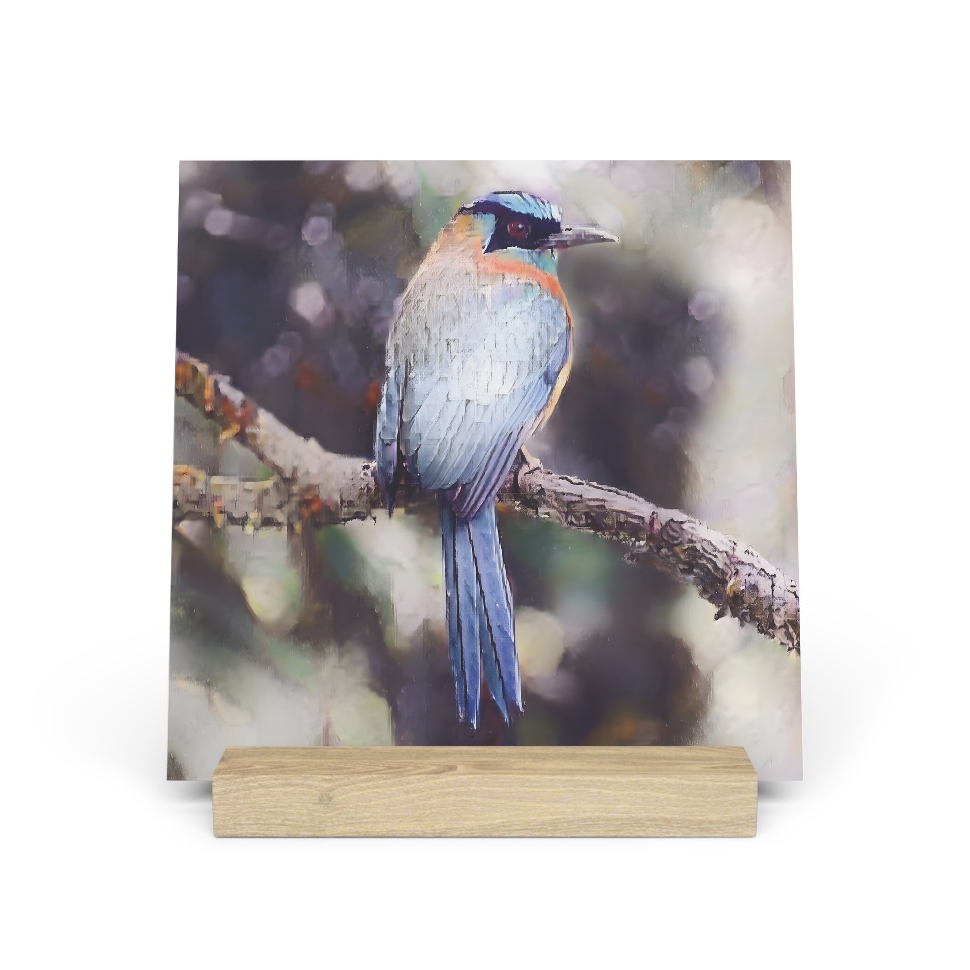 Artistic Tropical Bird Photo Gallery Board with Wooden Stand — Mini Nature Desk Art (Additional Sizes)
