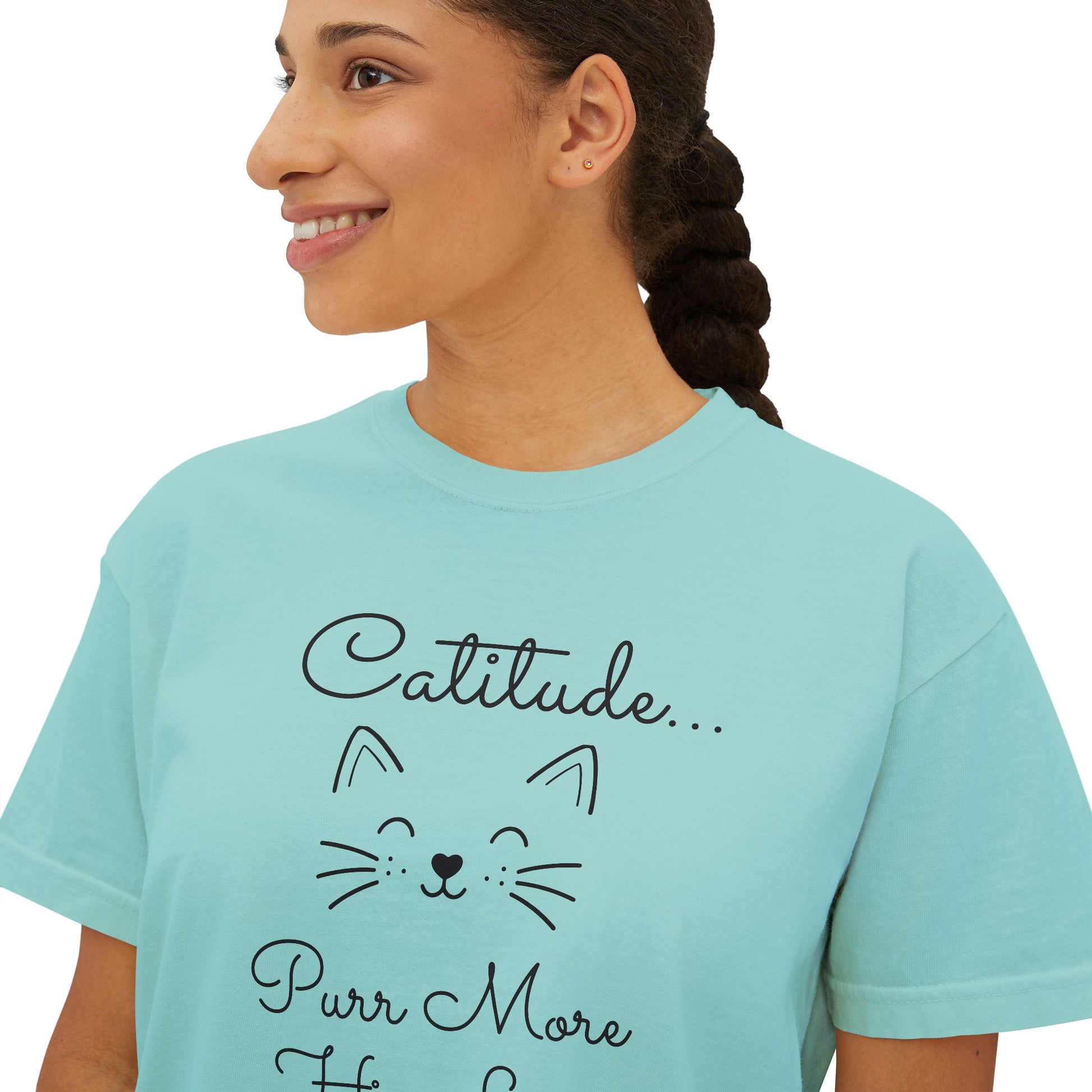 Catitude Boxy Tee — “Purr More, Hiss Less” Cute Cat Graphic T-Shirt (Additional Colors)