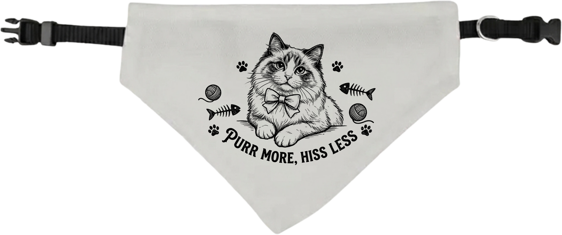 Clip-On Cat Design Pet Bandana — 'Purr More, Hiss Less' Cute Cat Bandana for Cats & Small Pets