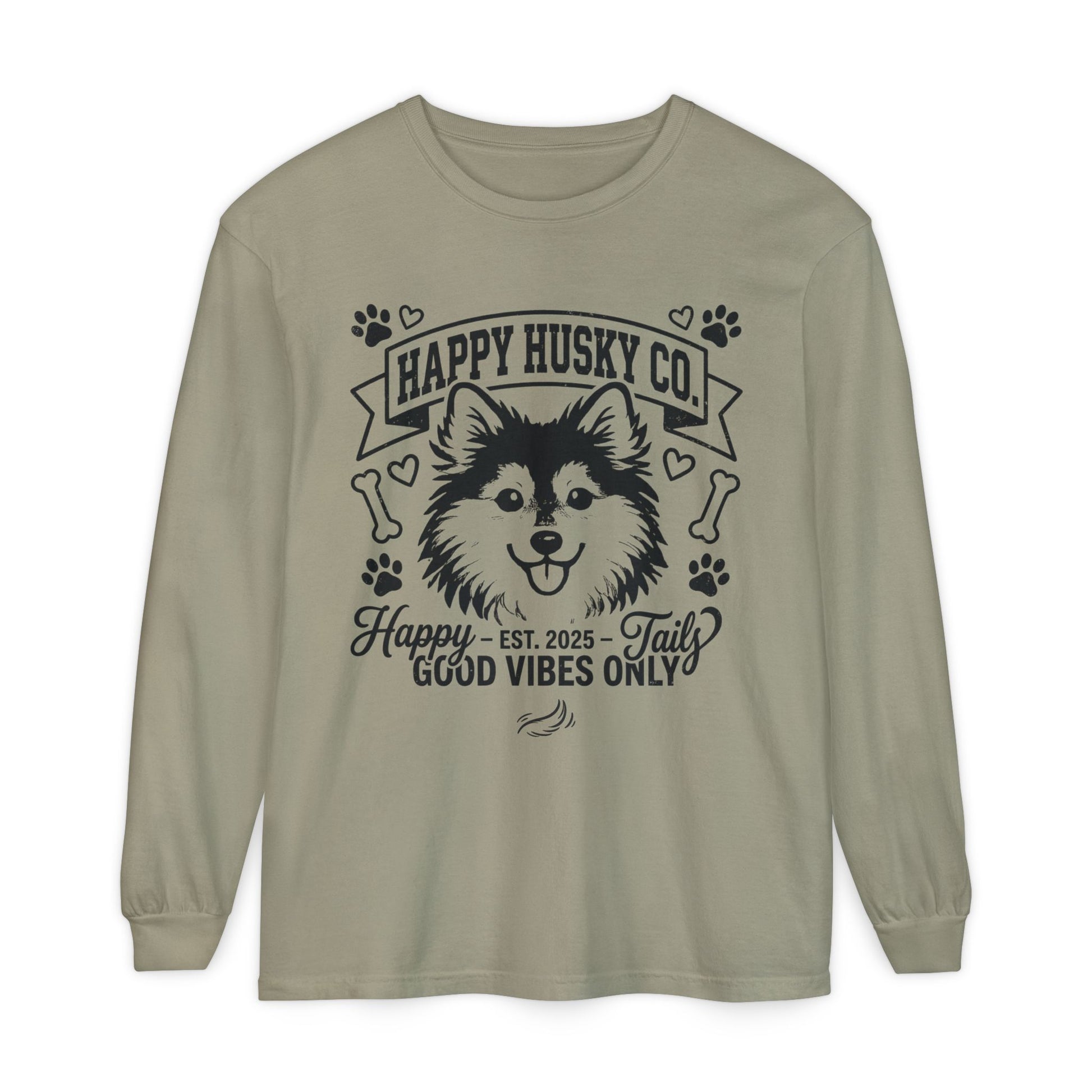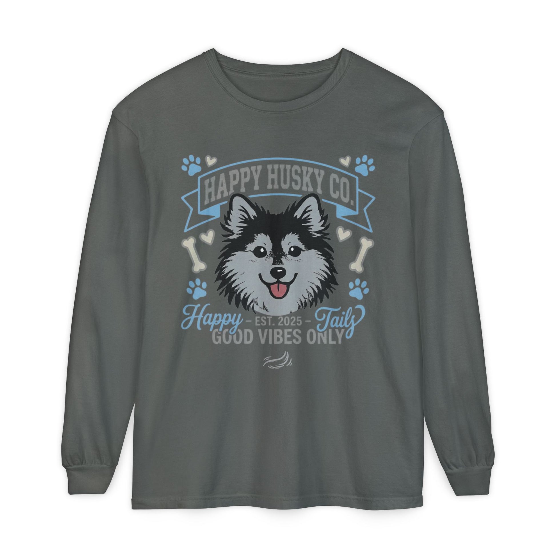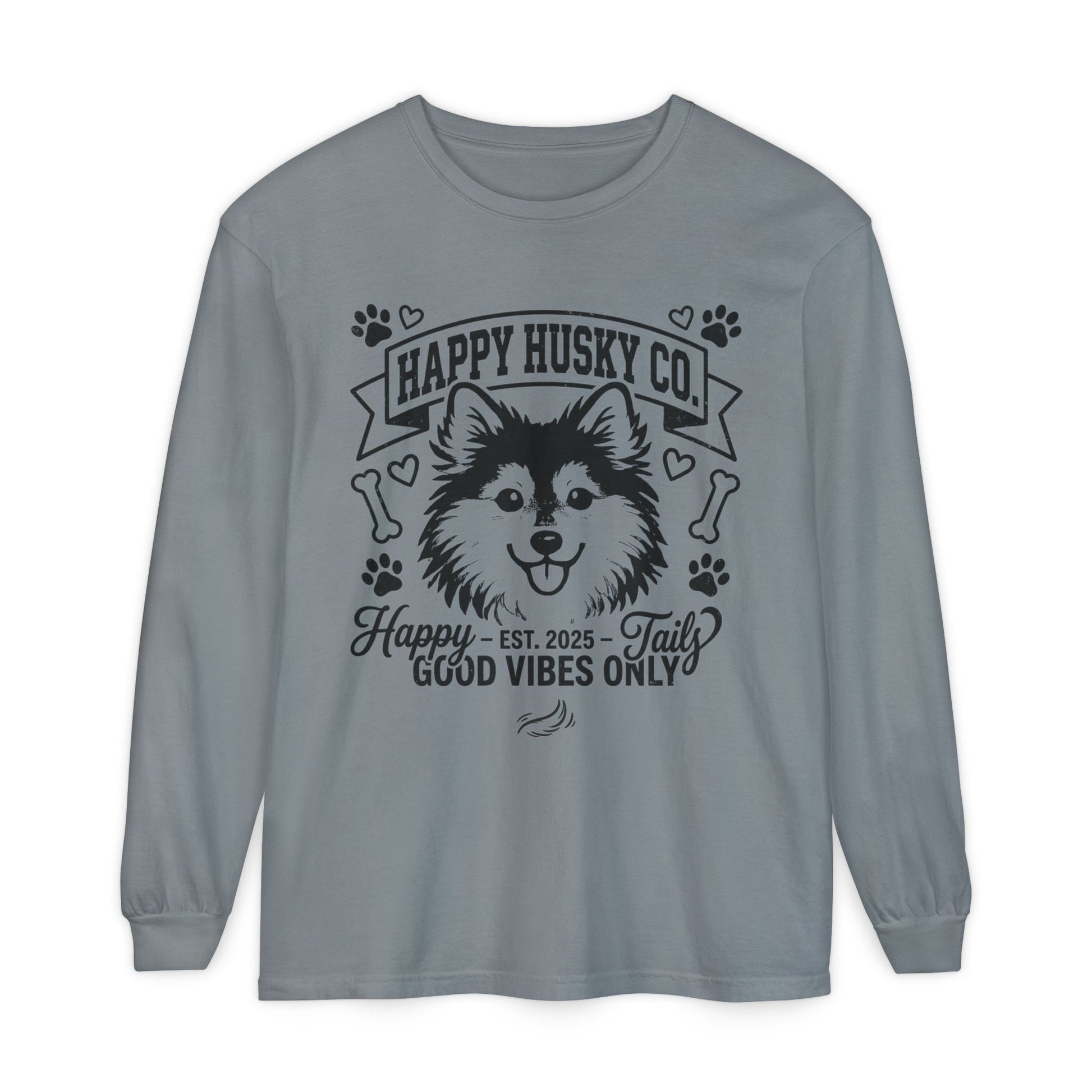 Happy Husky Co. Unisex Long Sleeve Tee — 'Happy Tails, Good Vibes Only' Dog Lover Shirt (Additional Colors)