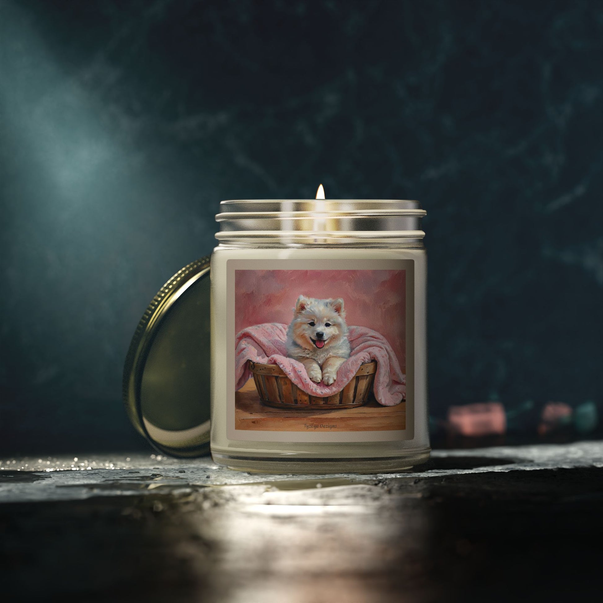 Samoyed in a Basket Artist-Inspired Design Luxe Scented Candle (4oz / 9oz) — Choice of Soothing Home Fragrances