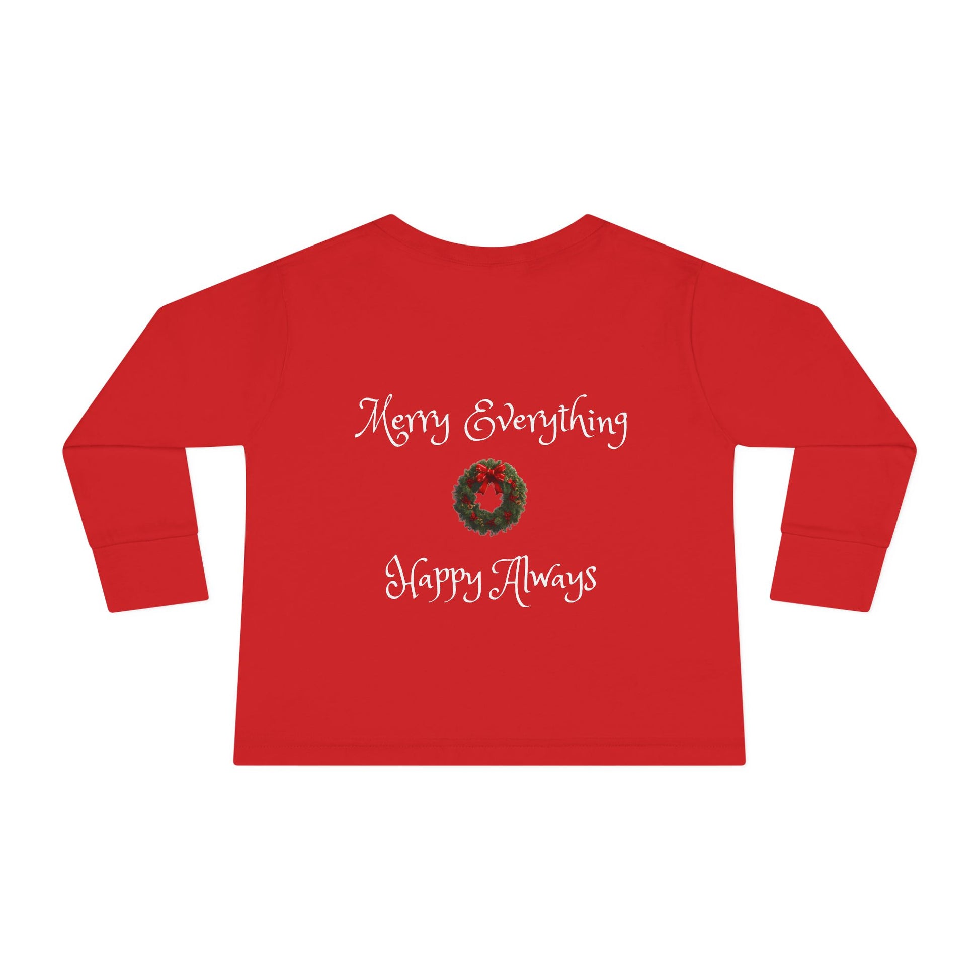 Introducing the perfect addition to your toddler's holiday wardrobe: this charming Samoyed theme Long Sleeve Tee is designed to bring warmth and cheer during festive occasions. With a delightful print featuring a playful puppy and holiday greetings on the front and back, this tee evokes a joyful, cozy feeling, making it ideal for family gatherings. Embrace the spirit of the season and create lasting memories with loved ones - adult sizes available in this design as well for a family pajama theme.