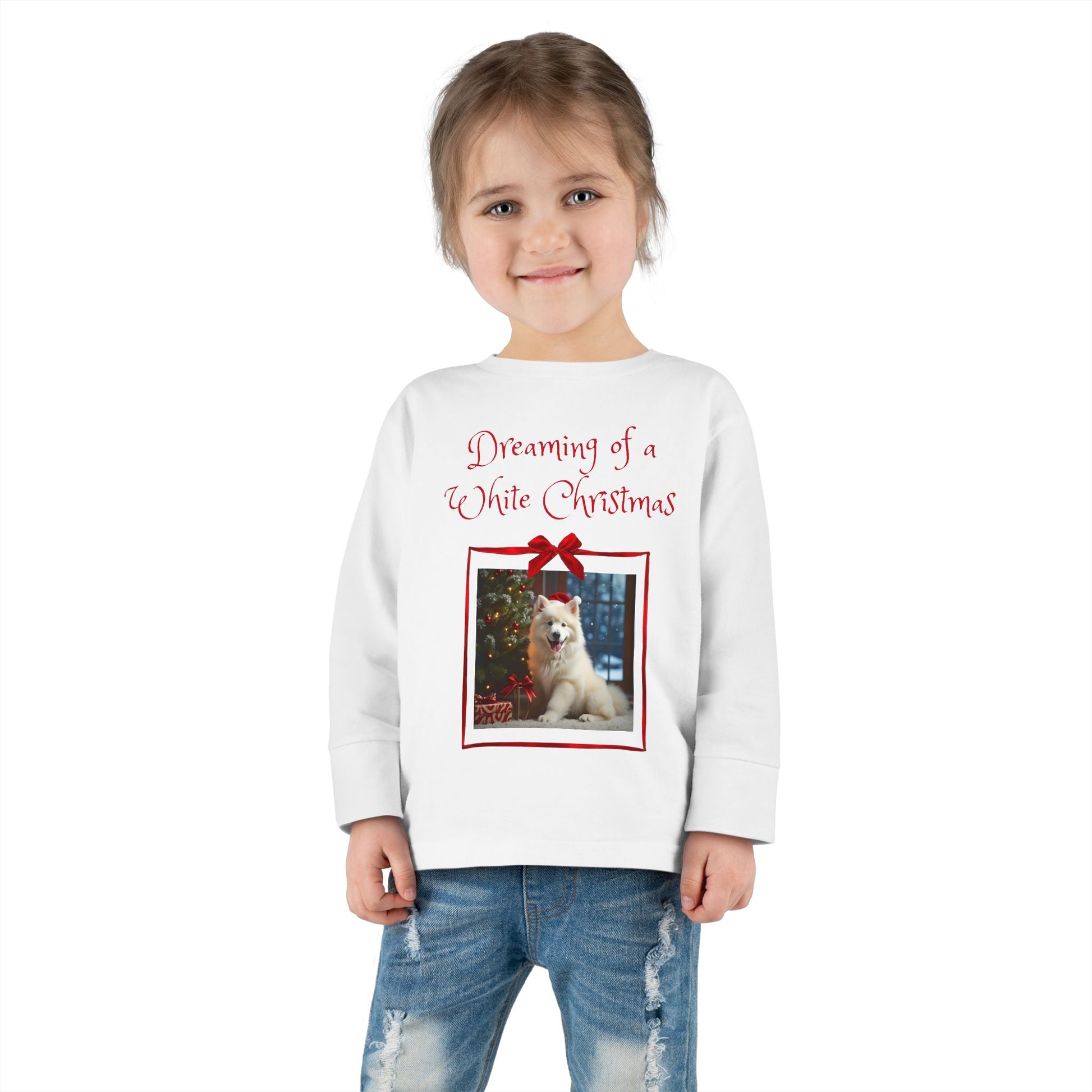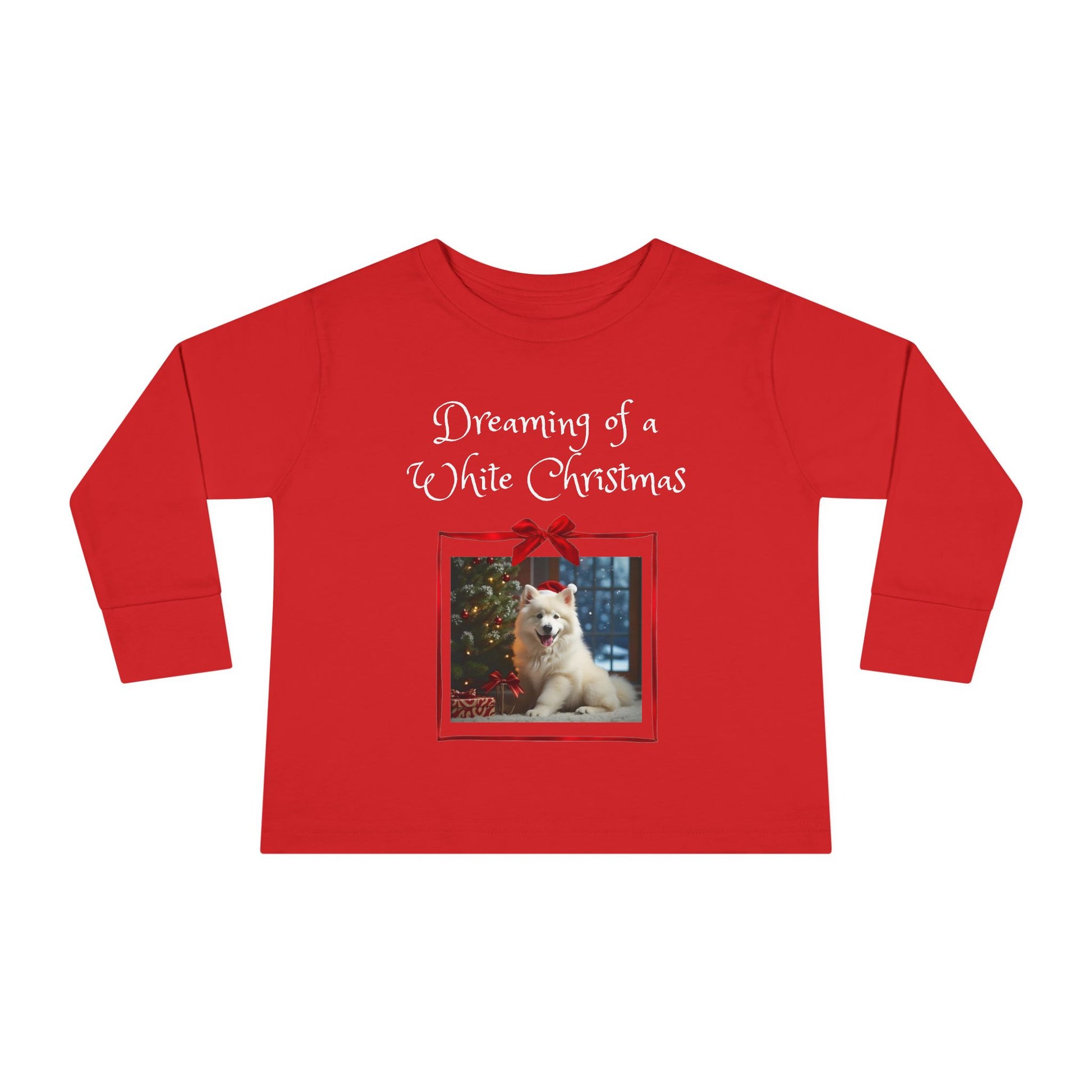 Toddler Christmas Samoyed Dog Theme Long Sleeve Tee - 'Dreaming of a White Christmas' (Additional Color)