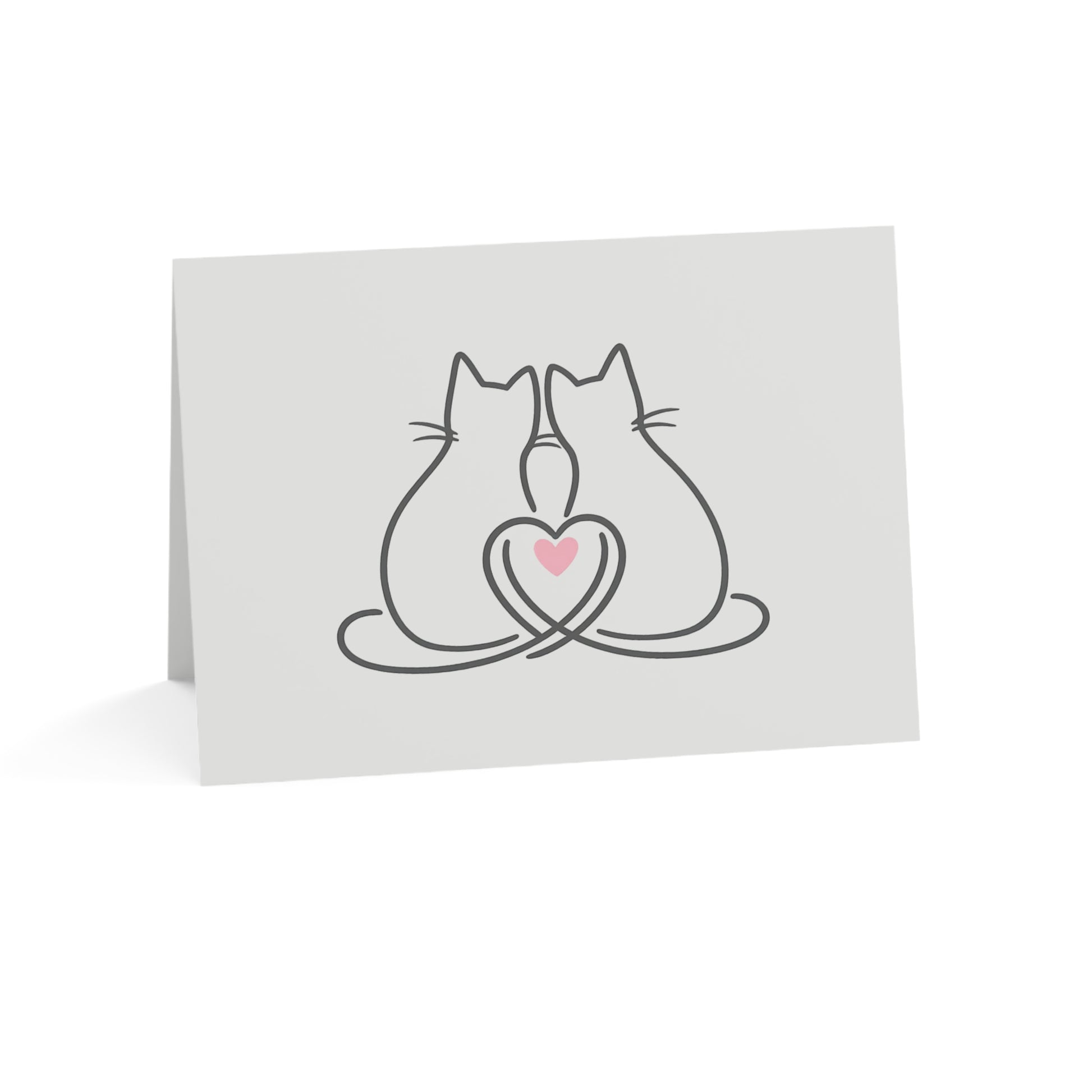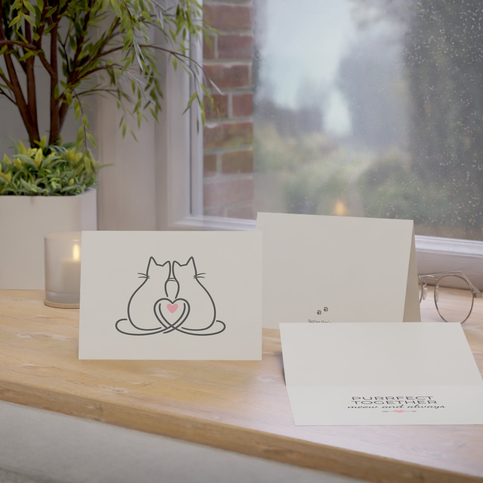 Two Cats & A Heart Greeting Card — 'Purrfect Together, Meow and Always' Note for Couples, Cat Lovers (1/10/30 pcs)