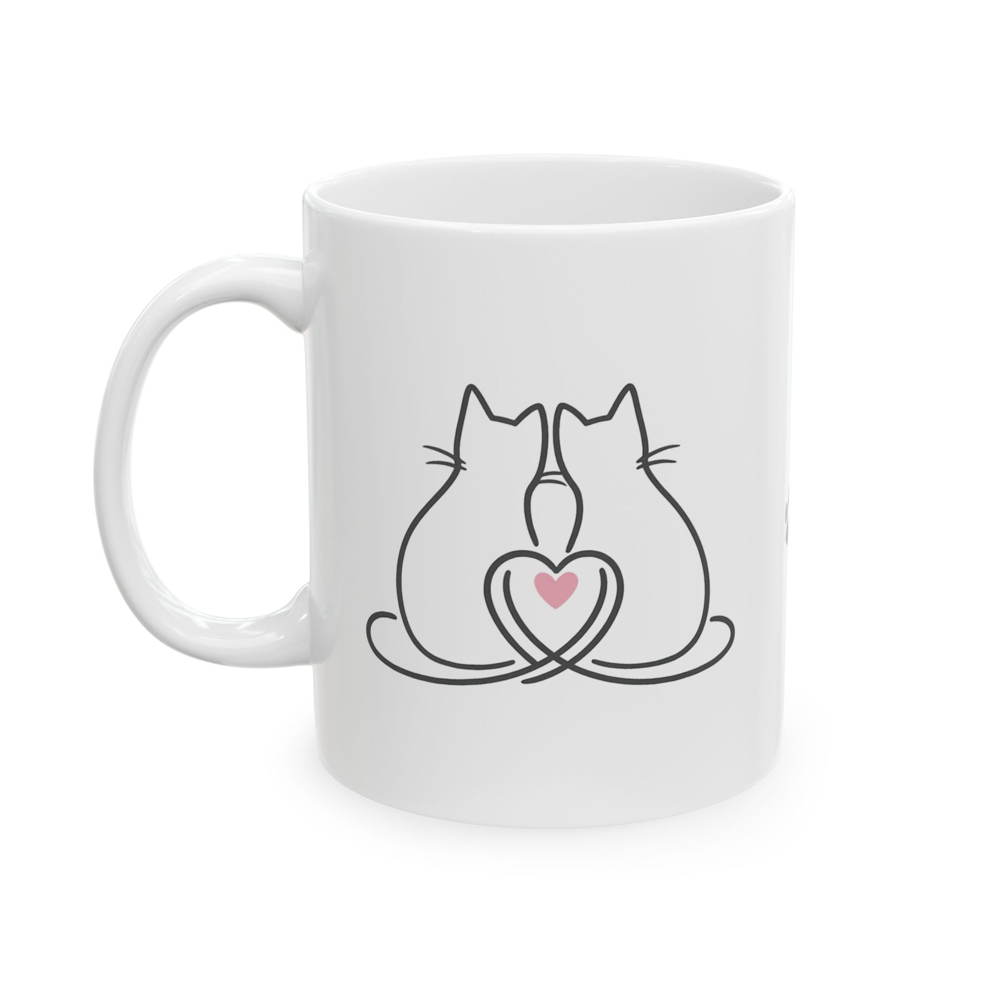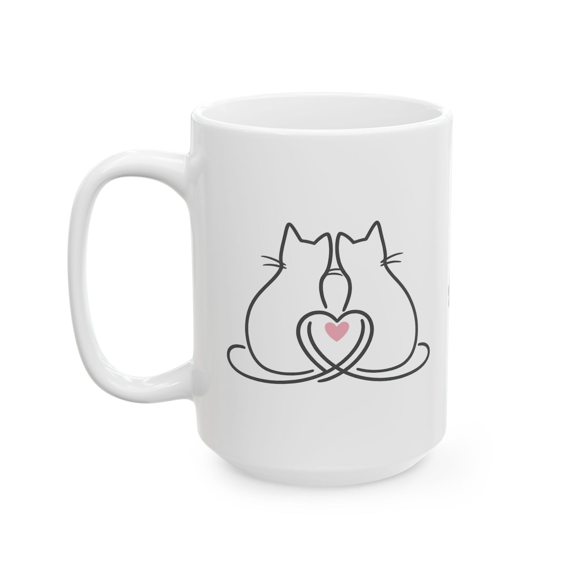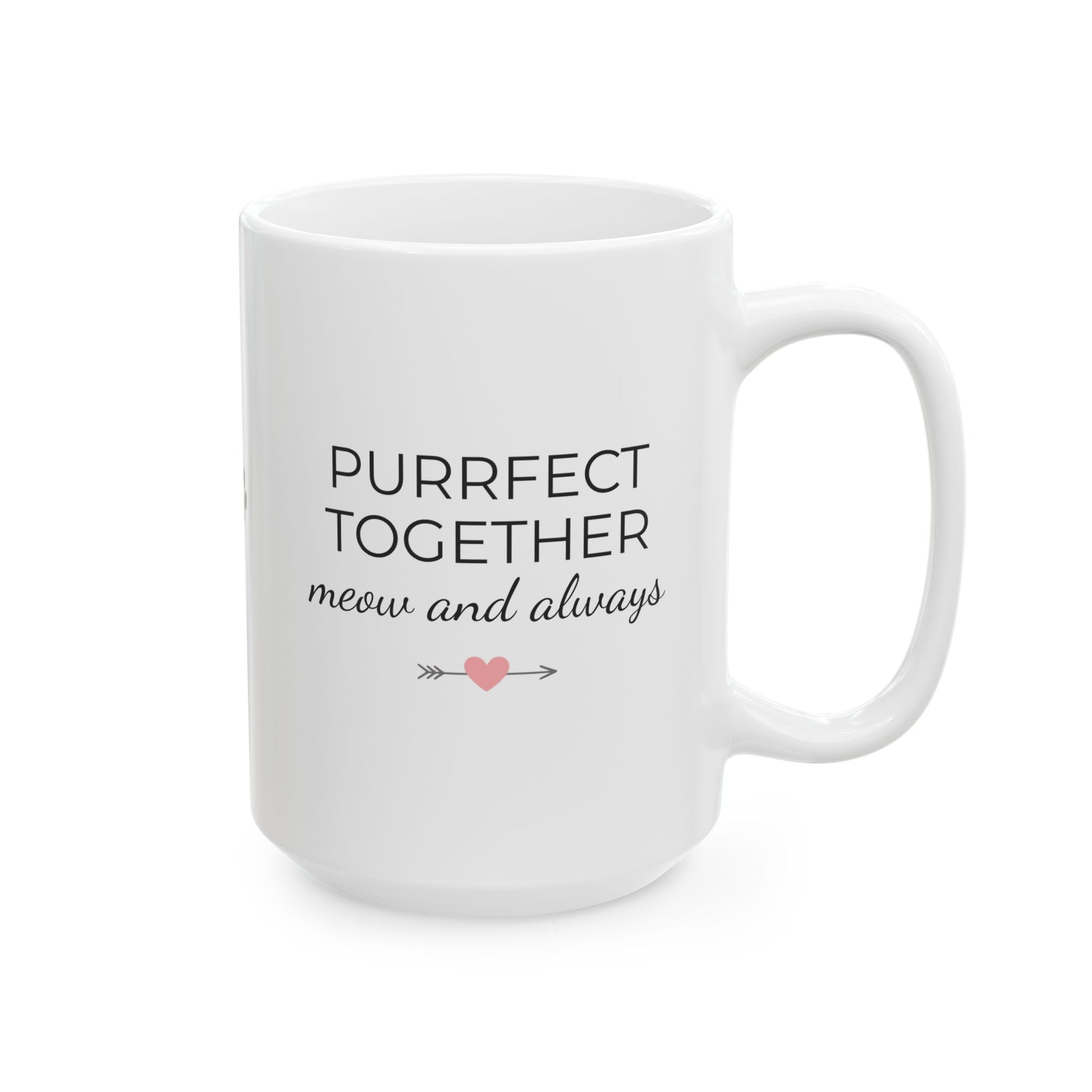 Two Cats and a Heart White Ceramic Mug — "Purrfect Together meow & always" (11oz & 15oz)