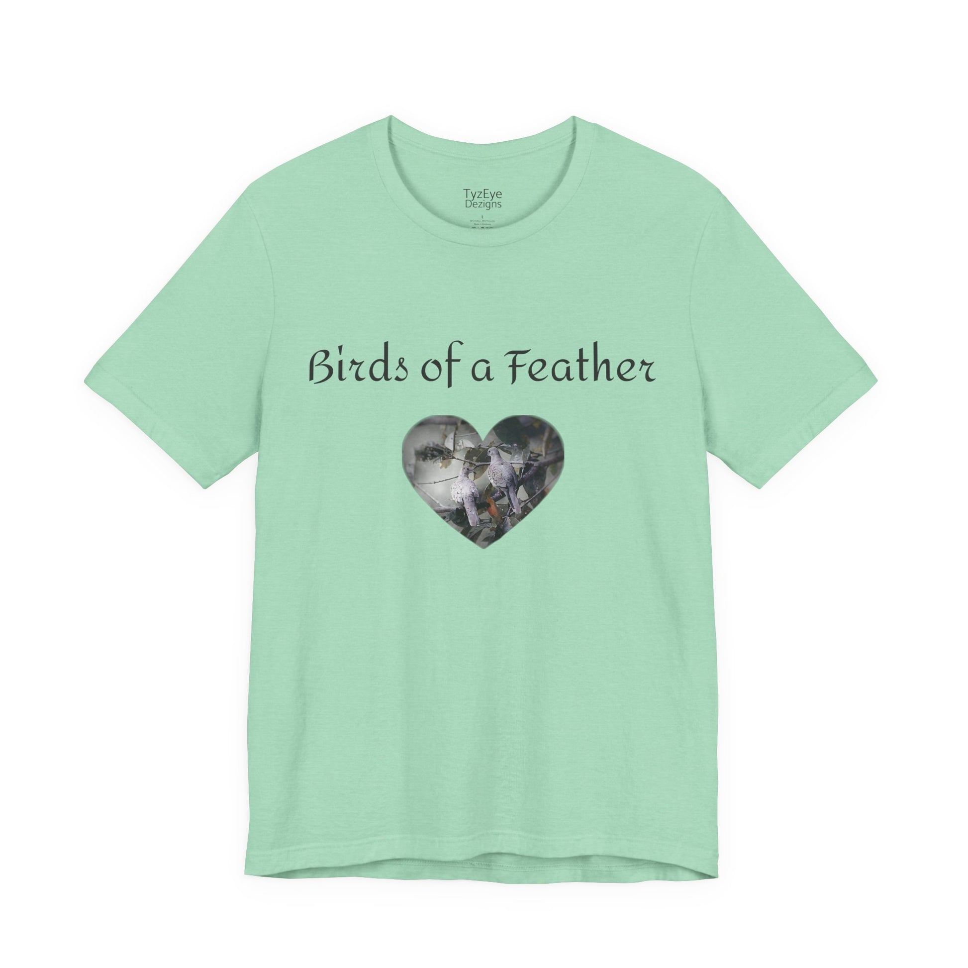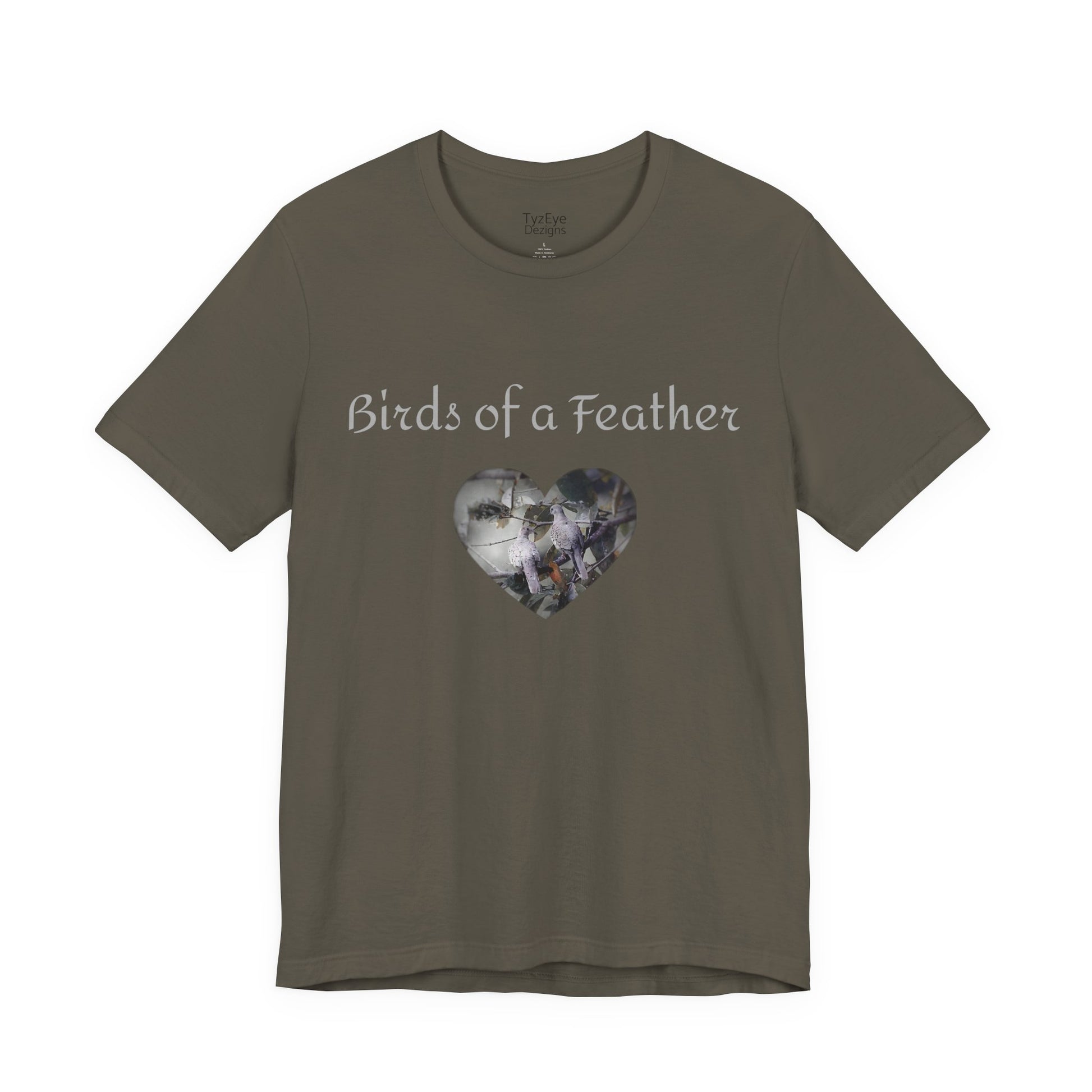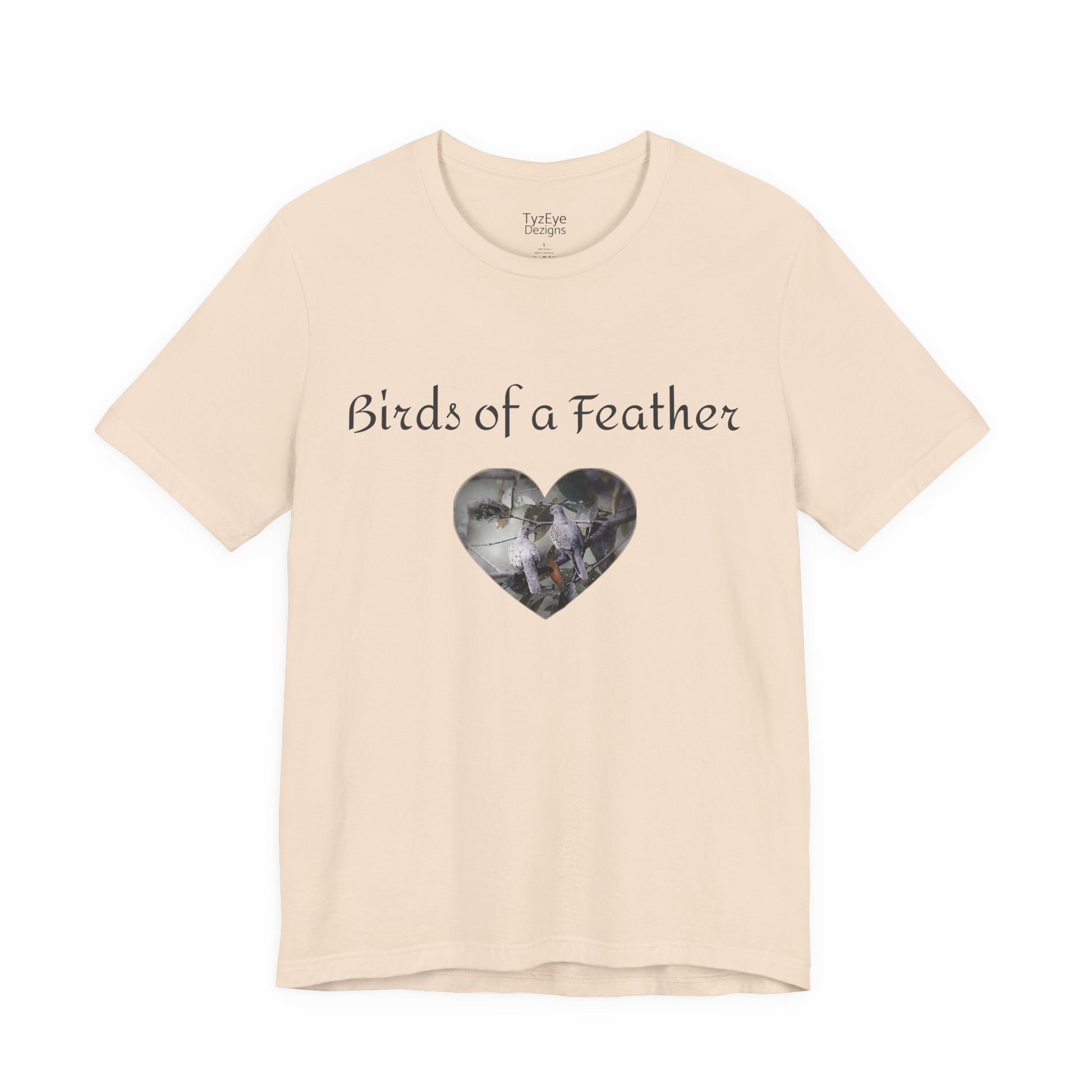 Adult Unisex Heart-Shaped 'Birds of a Feather' Two Doves & 'Two Hearts One Branch' Double-Sided Graphic Tee (Additional Colors)