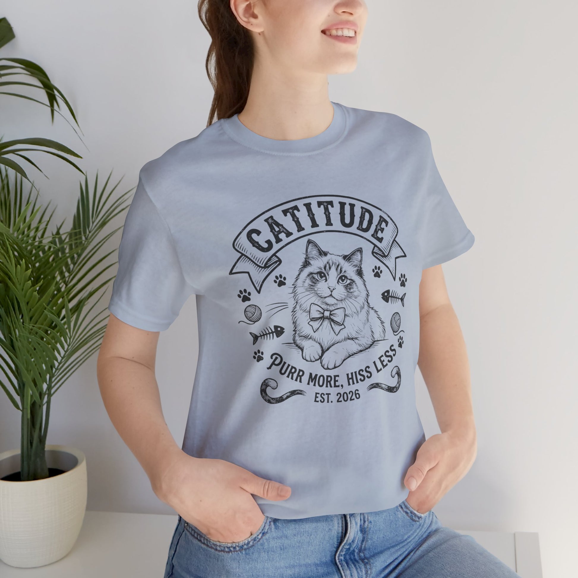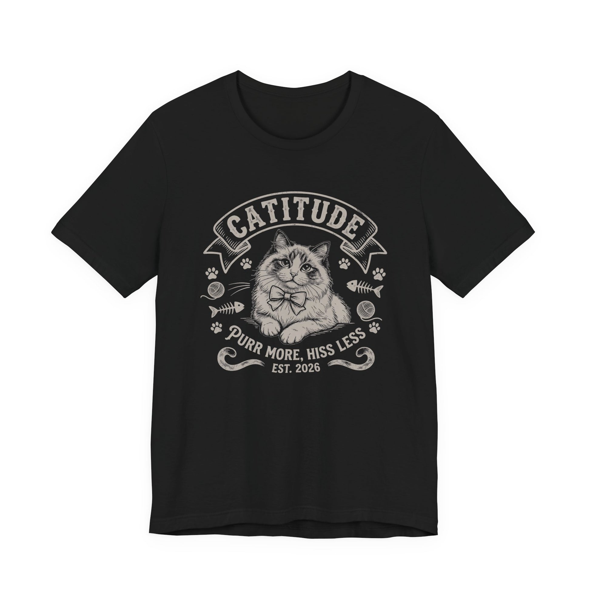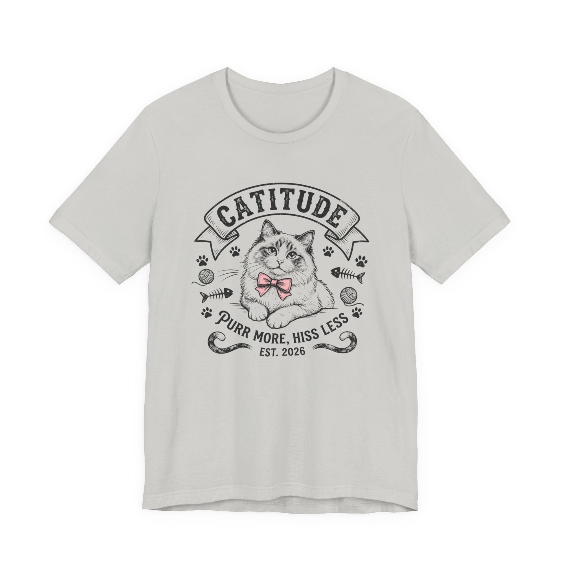 Unisex Jersey Short Sleeve Catitude Design Tee - 'Purr More, Hiss Less' (Additional Colors)