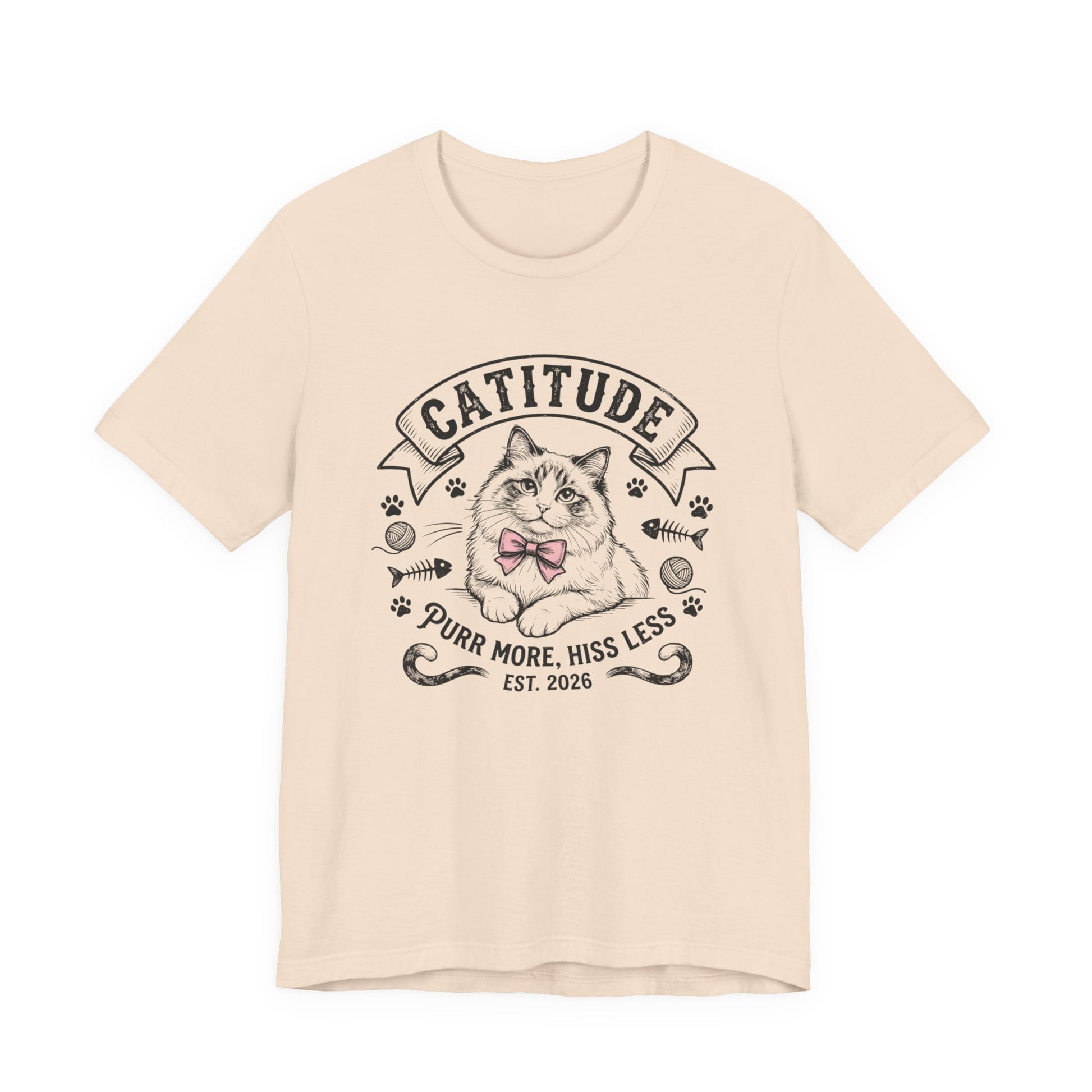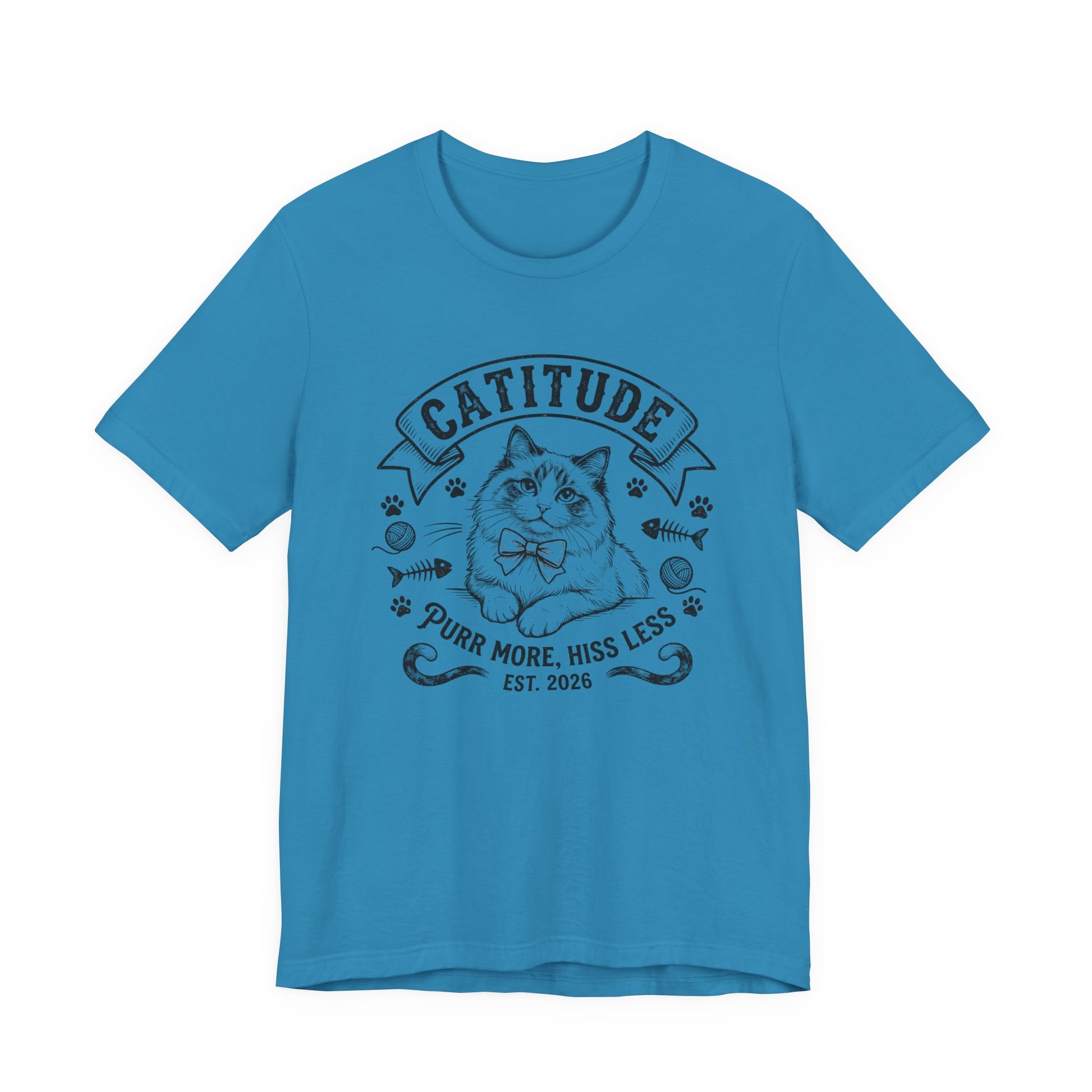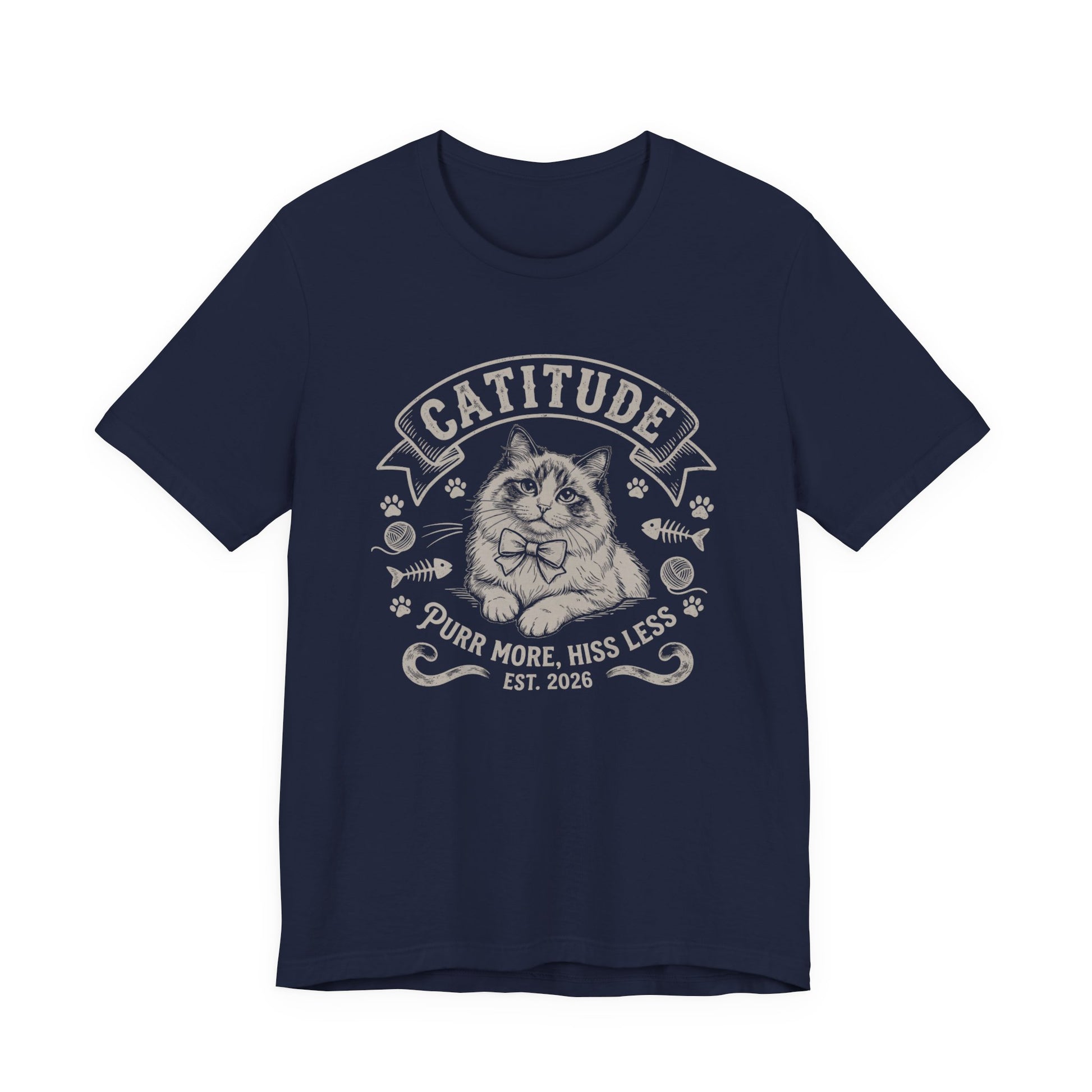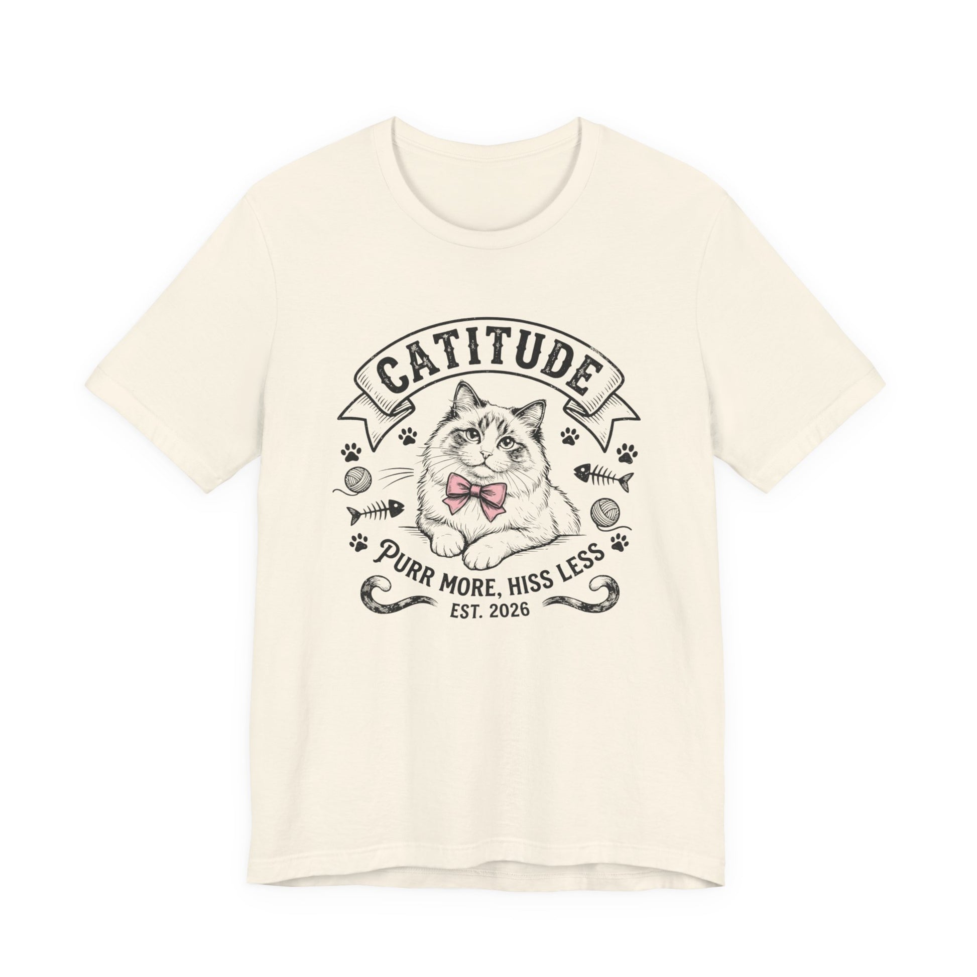 Unisex Jersey Short Sleeve Catitude Design Tee - 'Purr More, Hiss Less' (Additional Colors)