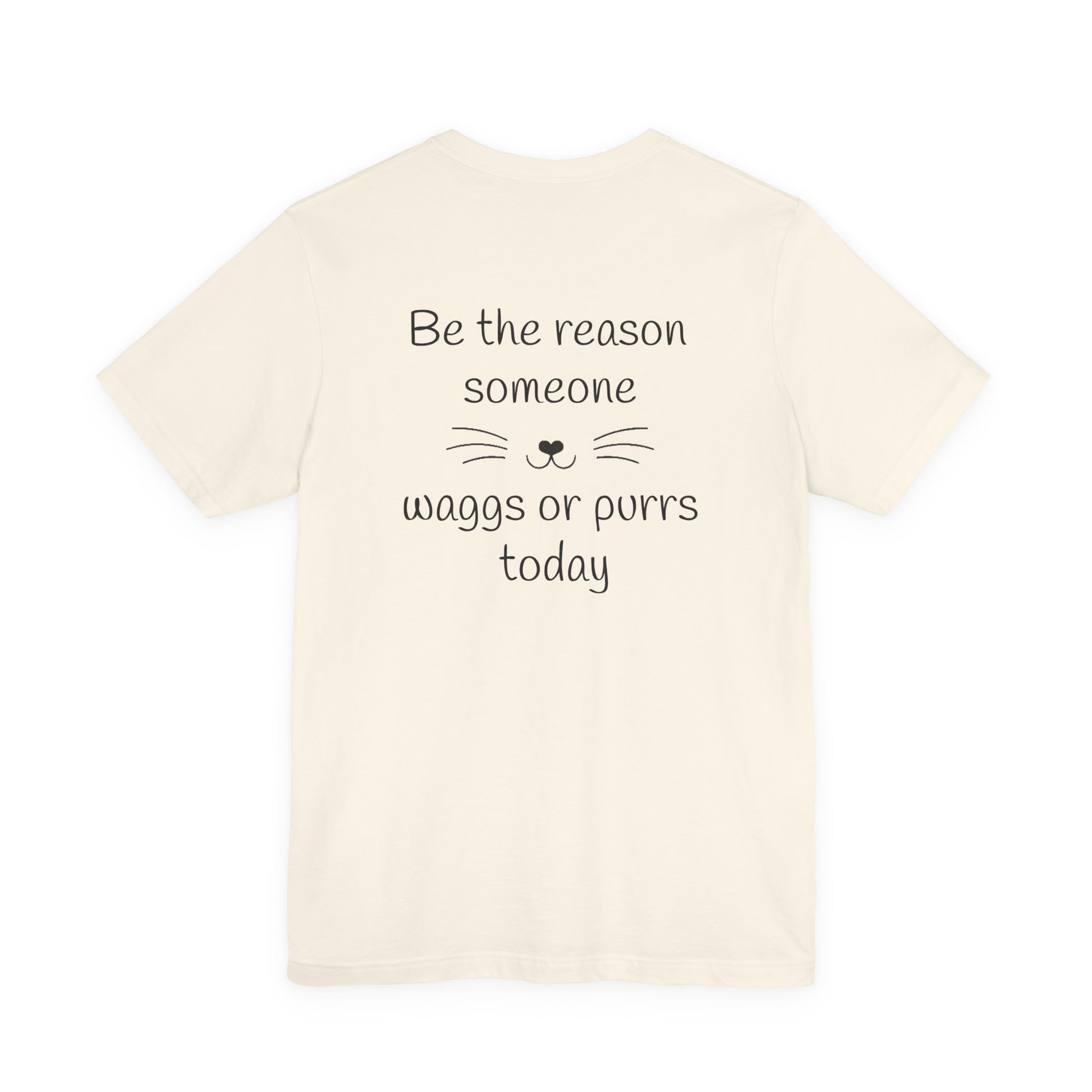 Adult Unisex 'Pawsitivity' T‑Shirt 'Be the Reason Someone Waggs or Purrs Today' Double-Sided Pet Lover Tee (Additional Colors)