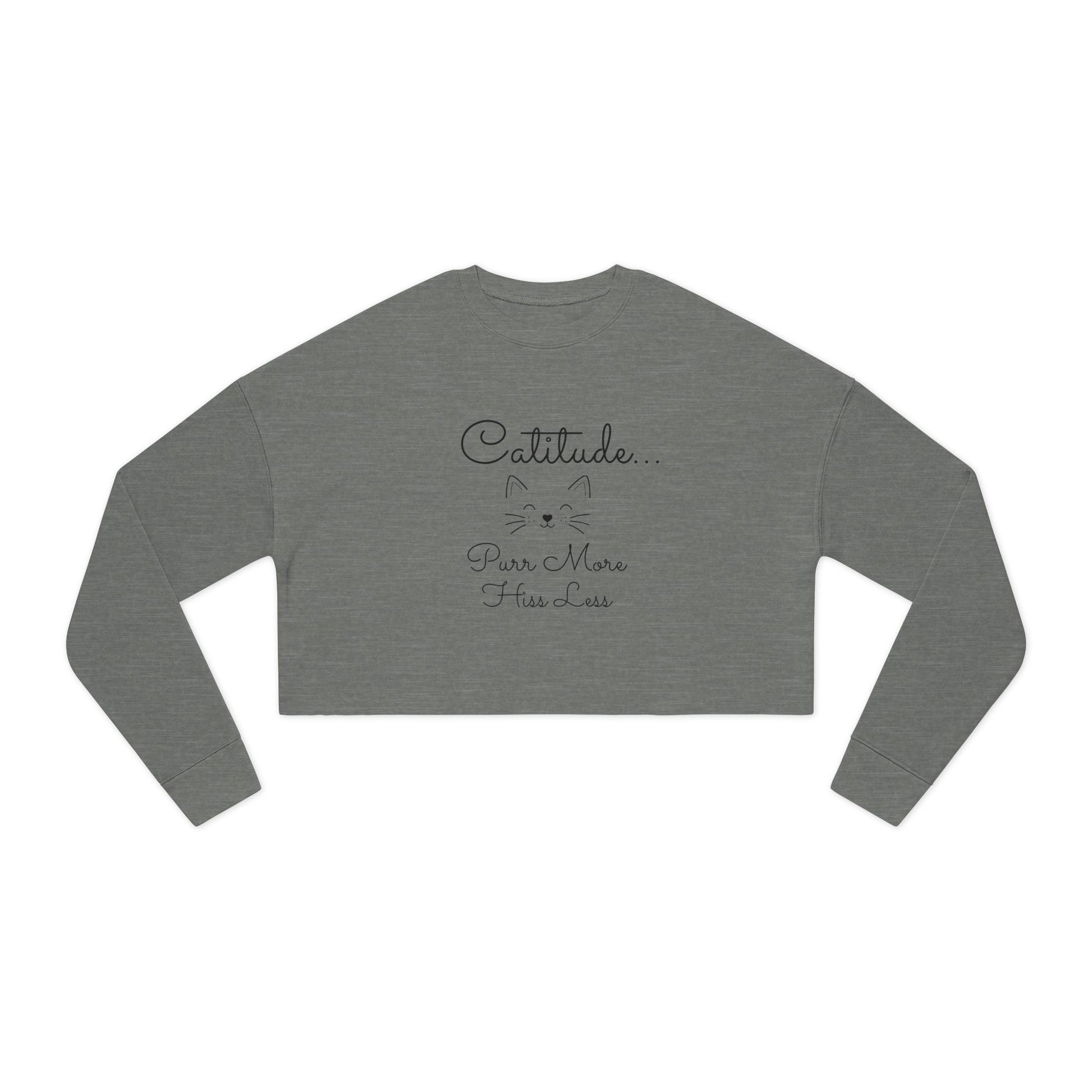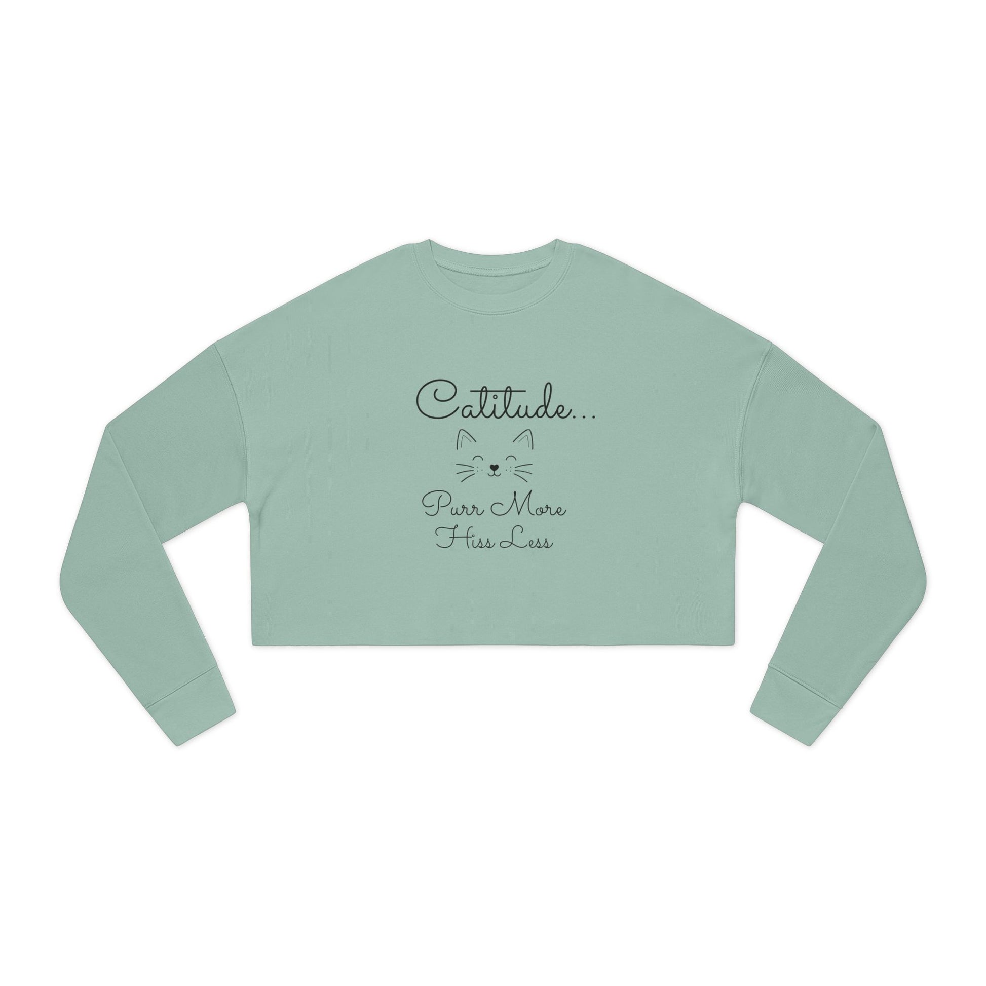 Women's 'Catitude' Cropped Double-Sided Sweatshirt – Cat Silhouette & 'Purr More Hiss Less' (Additional Colors)